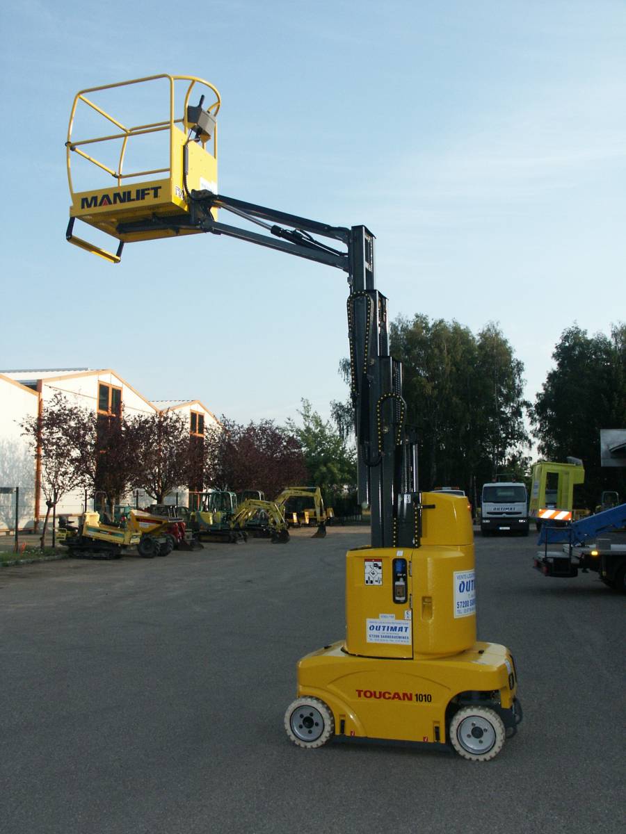 La nacelle TOUCAN 1010 possède une hauteur de travail de 10m, un déport de 3 à 6m et a une capacitée de charge au panier de 200kg.